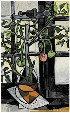 1944年夏天,畢加索與情人瑪麗·特雷斯生活在還處于納粹占領(lǐng)中的法國巴黎,有一天,他為家中窗臺(tái)上的番茄植物畫了一幅靜物,既反映了當(dāng)時(shí)食物緊缺、人們不得不自己種植農(nóng)產(chǎn)品的現(xiàn)實(shí),同時(shí)還以富有生機(jī)的色彩和成熟果實(shí)的意向表達(dá)了人們強(qiáng)烈的意志力。那個(gè)時(shí)候,番茄是這座城市窗臺(tái)和陽臺(tái)上最常見的東西。