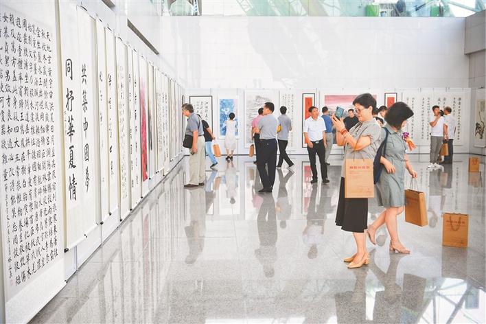 深圳特區(qū)報(bào)訊(記者尹春芳/文胡蕾/圖)一幅幅洋溢著激情的書畫作品,飽含對時(shí)代的歌頌。為慶祝中華人民共和國成立七十周年,由深圳市書畫家協(xié)會(huì)策劃,并聯(lián)合深圳民族精神和中國發(fā)展研究中心主辦,深圳市嘉鑫輝煌公司投資有限公司承辦,深圳汕尾商會(huì)協(xié)辦的“向祖國致敬——深圳書畫作品展暨感恩筆會(huì)”于昨天下午在深圳市民中心C禮廳開幕。現(xiàn)場高朋滿座,氣氛熱烈,彌漫著濃厚的藝術(shù)氣息,展現(xiàn)了鵬城深厚的藝術(shù)底蘊(yùn)。