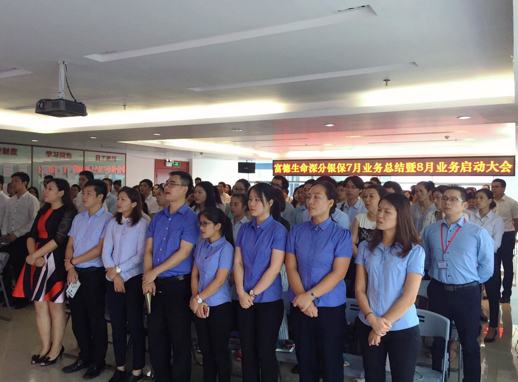 深圳新聞網(wǎng)訊 7月22日,富德生命人壽深圳分公司銀行保險(xiǎn)中心召開銀保中心七月業(yè)務(wù)總結(jié)暨八月業(yè)務(wù)啟動(dòng)大會(huì)。分公司總經(jīng)理助理高東亞、銀保中心總監(jiān)任華、各營(yíng)業(yè)區(qū)總監(jiān)、部經(jīng)理、客戶經(jīng)理及銀保中心全體內(nèi)勤員工出席會(huì)議。
