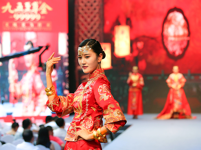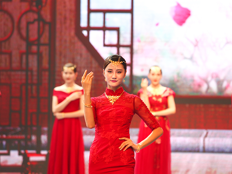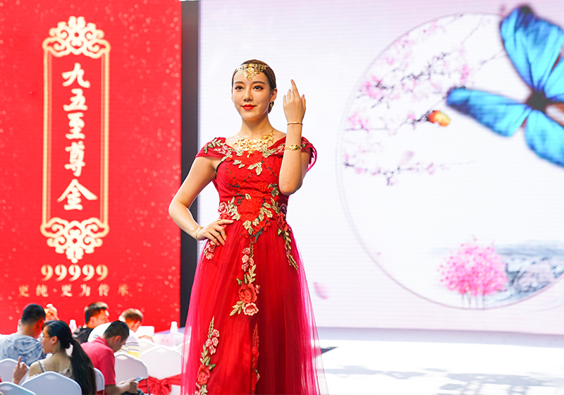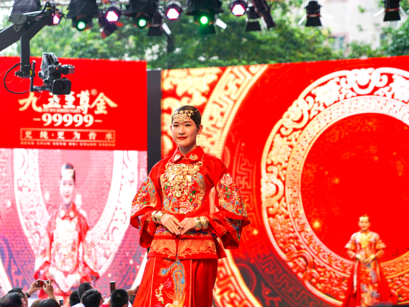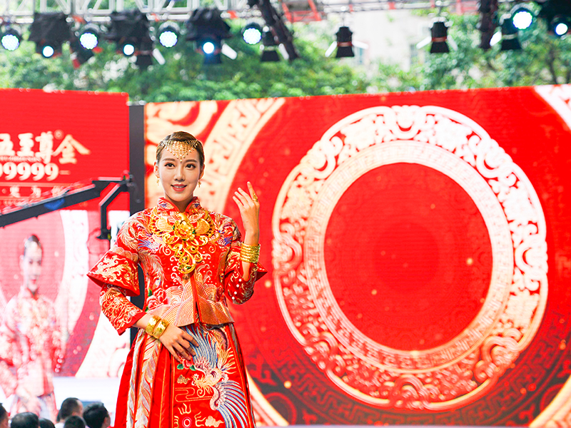 黃金文化與中國傳統(tǒng)婚慶文化淵源久遠(yuǎn),從古自今,黃金有情比金堅(jiān)之意,有滿滿的喜慶之感,在嫁娶之時(shí)通常作為聘禮中的重頭戲。結(jié)婚三金通常指的是項(xiàng)鏈、手鐲、戒指,寓意夫妻情比金堅(jiān),一生一世永相隨之意,因此這美好的寄愿習(xí)俗一直被傳承至今。黃金又是財(cái)富、身份的象征,結(jié)婚佩戴黃金首飾,彰顯家族的財(cái)富、地位與榮譽(yù),飽含家族人濃郁的情感與欣喜,可代代傳承!九五至尊金至囍新娘演繹的中華黃金婚慶文化,唯美唯俏,牽動(dòng)著每個(gè)人的心,掀起了中華黃金婚慶文化的熱潮。