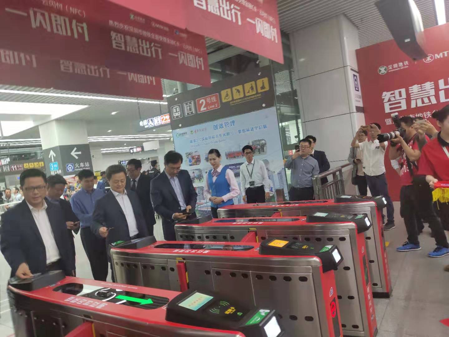 活動結(jié)束后,眾人來到福田地鐵站體驗了金融IC卡過閘的便捷。