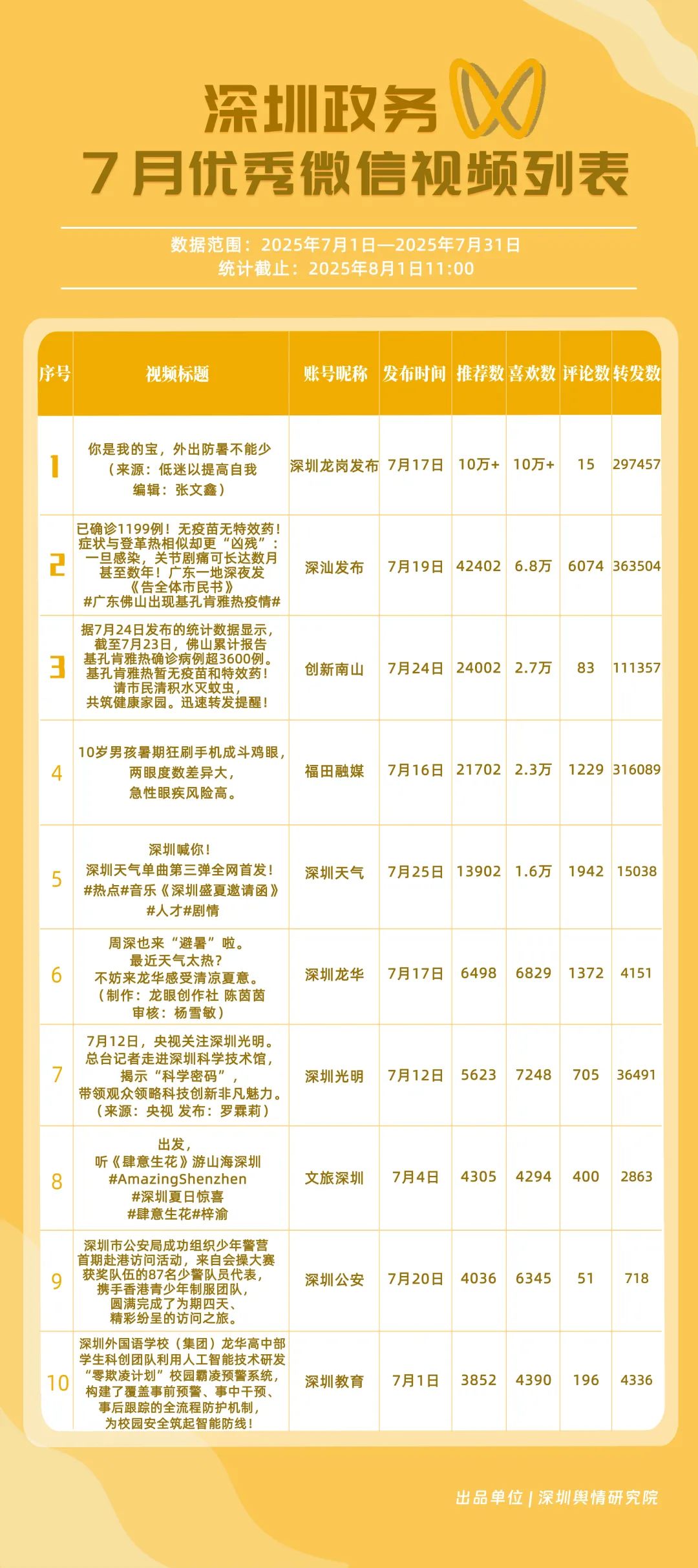四、7月深圳優(yōu)秀政務(wù)新媒體賬號