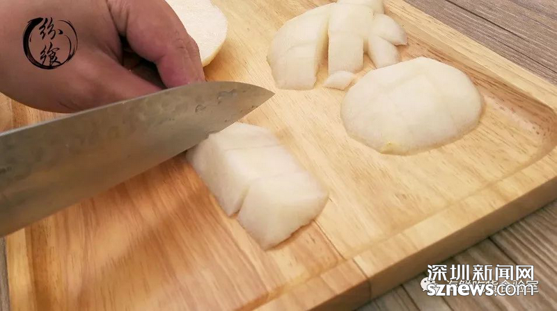 泡發(fā)好的燕窩一份、雪梨一個(gè)、冰糖和枸杞若干。