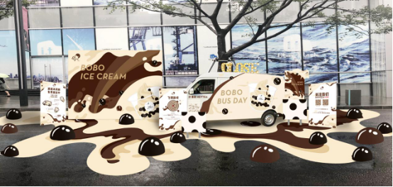 本次喜茶“波波冰淇淋巴士”全面升級(jí),延續(xù)了時(shí)尚的波點(diǎn)元素,融入冰淇淋流質(zhì)爽滑的視覺(jué)形象,讓整個(gè)快閃店在炎熱的夏天也透著一絲絲涼意?,F(xiàn)場(chǎng)還增加了波波冰淇淋背景墻與地貼,烘托了夏天的歡樂(lè)氛圍,為消費(fèi)者打造更有趣味性的互動(dòng)環(huán)境。
