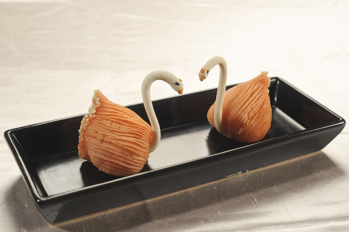 如果說,雅致的餐廳環(huán)境能讓人留下印象,那讓人記住且流連忘返的必定是美味的出品。陶陶居不僅匯集各類廣府名點,而且在傳統(tǒng)點心的基礎上加以改良創(chuàng)新,始終堅持全手工現(xiàn)場制作,在口味和品質上獲得各地食客的一致好評。其中,馳名的陶陶居大蝦餃完美呈現(xiàn)十三道褶,顆顆飽滿,外皮晶瑩剔透,包裹住三只鮮蝦仁,鮮美誘人;鮮果榴蓮天鵝酥對傳統(tǒng)的榴蓮酥加以改良,采新鮮榴蓮入餡,原創(chuàng)天鵝造型,造型優(yōu)美,廣獲好評;曾被湖南衛(wèi)視《天天向上》節(jié)目推薦的流沙奶皇豬豬包,則是使用咸鴨蛋新鮮制作而成的,香而不膩,造型可愛,是店內最受小朋友喜愛的茶點之一。