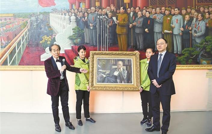 ▲劉宇一(左一)向深圳大學(xué)贈(zèng)畫。深圳晚報(bào)記者 馮明 攝
