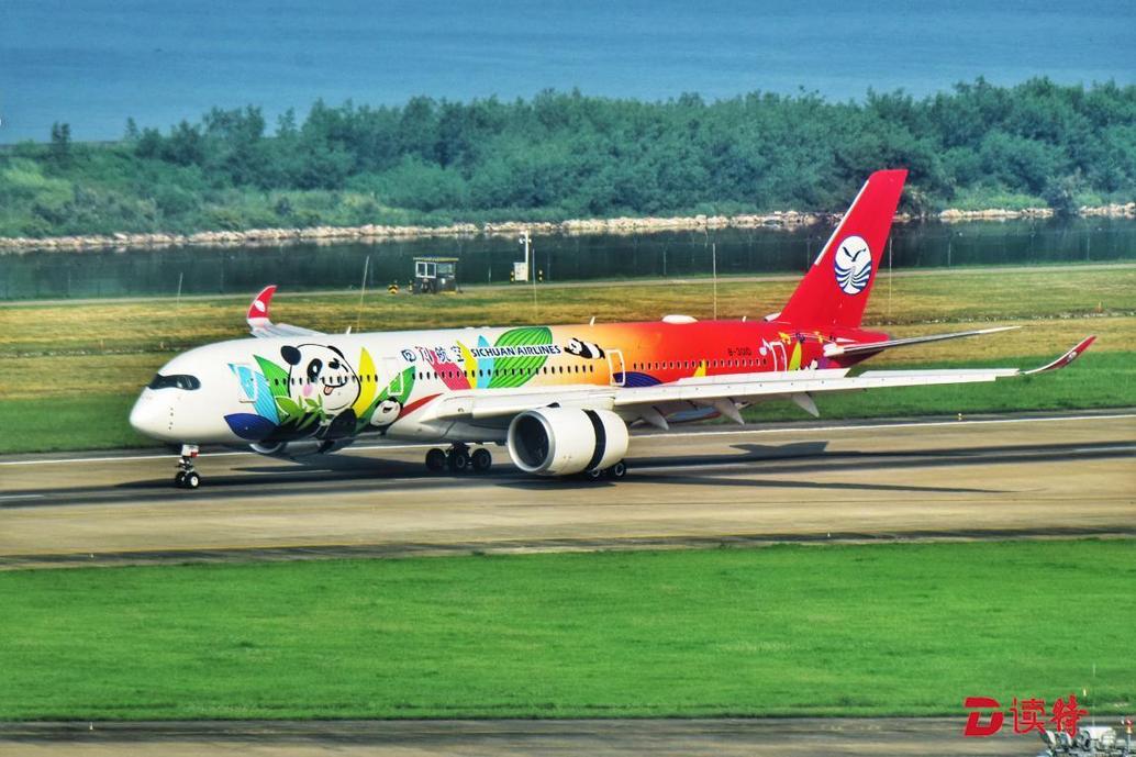 原標(biāo)題:川航A350飛機(jī)首秀深圳 “熊貓彩繪”驚艷深圳機(jī)場