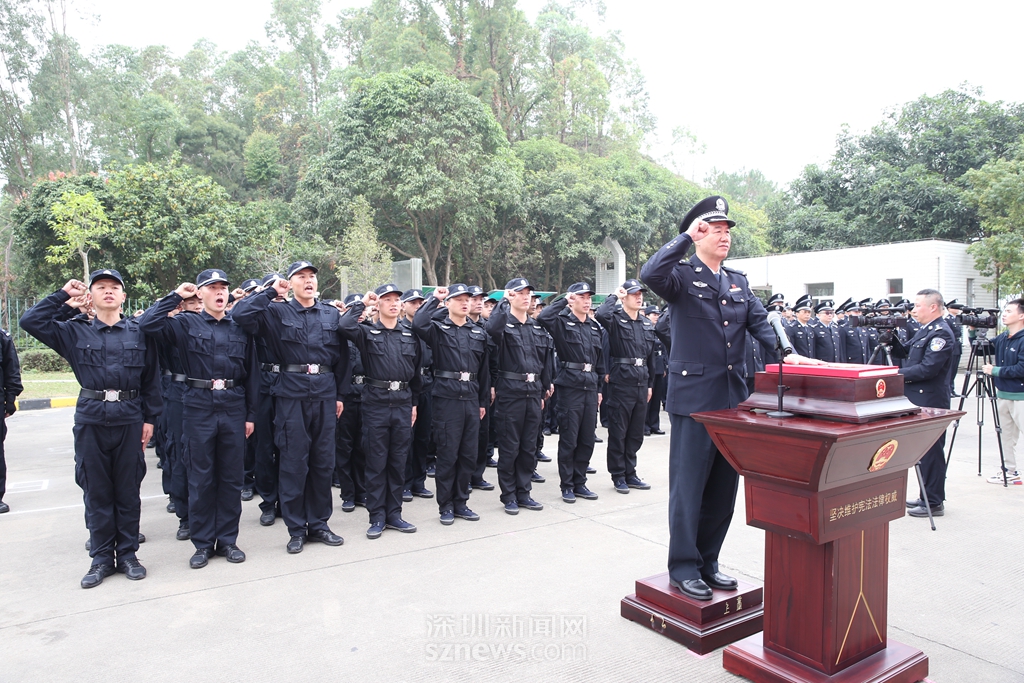 “我宣誓,忠于中華人民共和國(guó)憲法,維護(hù)憲法權(quán)威,履行法定職責(zé),忠于祖國(guó),忠于人民,恪盡職守,廉潔奉公,接受人民監(jiān)督,為建設(shè)富強(qiáng)民主文明和諧美麗的社會(huì)主義現(xiàn)代化強(qiáng)國(guó)奮斗!”鏗鏘誓言,猶在耳畔?;顒?dòng)中,深圳監(jiān)獄監(jiān)獄長(zhǎng)蔡曙光,帶領(lǐng)70名新入職警察面對(duì)國(guó)徽、手撫憲法,許下了他們忠于祖國(guó)、忠于人民的錚錚誓言,這也是深圳監(jiān)獄對(duì)新入職警察開展集中的入職憲法宣誓。