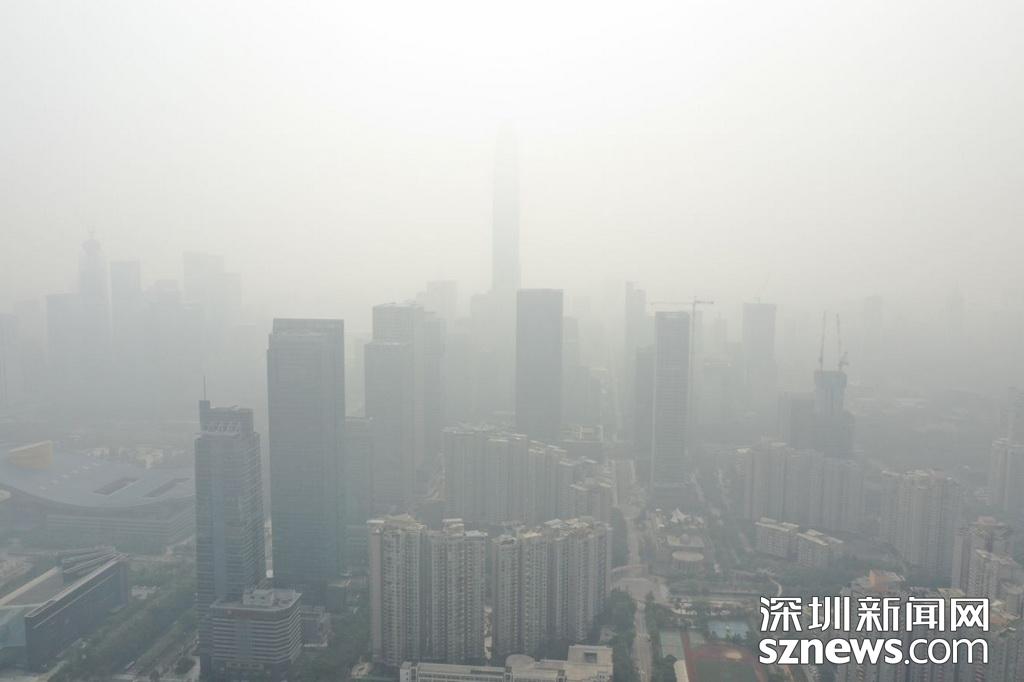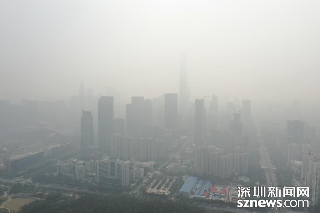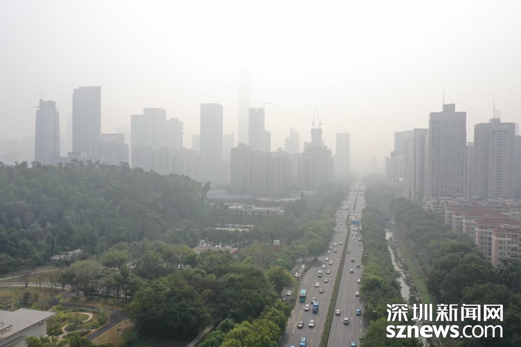 1月12日,霧霾襲深,深圳天氣君發(fā)布預(yù)警,今天最好不要在室外玩耍。記者中午用無人機航拍福田CBD區(qū)域,鏡頭下,市民中心和平安金融大廈兩個地標(biāo)幾乎無法辨別,新洲路上能見度很低,一切都仿佛浸在化不開的濃湯里。深圳天氣君在微博提醒:弱北風(fēng)影響下,不利于污染物擴散,我市中西部地區(qū)下午會持續(xù)十面“霾”伏,灰霾黃色預(yù)警信號生效中,各位盡量不要長時間戶外活動。