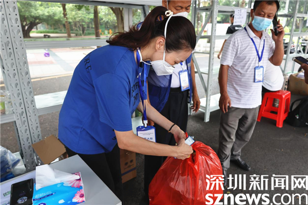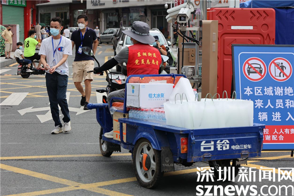 在新平村口,記者看到村口外圍已用水馬進(jìn)行合圍,來(lái)自街道、疾控、社區(qū)還有大望實(shí)業(yè)股份有限公司、梧桐山實(shí)業(yè)股份有限公司等單位的工作人員正在準(zhǔn)備開(kāi)展工作。在合圍的多個(gè)出入口處設(shè)置了快遞、外賣投放點(diǎn),由防疫人員為中、高風(fēng)險(xiǎn)的居民送貨上門。