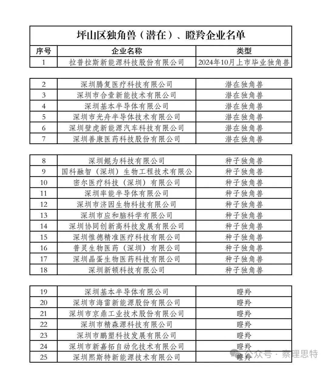 以坪山區(qū)為例,坪山區(qū)企業(yè)拉普拉斯入選全市新晉獨(dú)角獸企業(yè),也是其中3家上市畢業(yè)獨(dú)角獸企業(yè)之一。此外,坪山區(qū)有6家企業(yè)入選潛在獨(dú)角獸企業(yè),11家企業(yè)入選種子獨(dú)角獸企業(yè),7家企業(yè)入選瞪羚企業(yè)。盡管坪山只有一家企業(yè)入選全市新晉獨(dú)角獸企業(yè),但是從數(shù)據(jù)來(lái)看,坪山區(qū)潛在獨(dú)角獸企業(yè)、種子獨(dú)角獸企業(yè)和瞪羚企業(yè)很多,后勁和潛力之大可以期待。