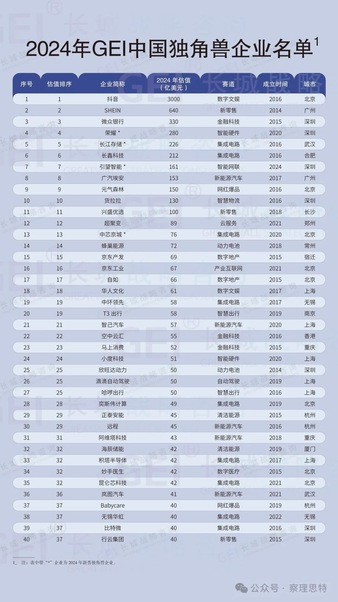 ▲《2024年GEI中國(guó)獨(dú)角獸企業(yè)名單》(部分)