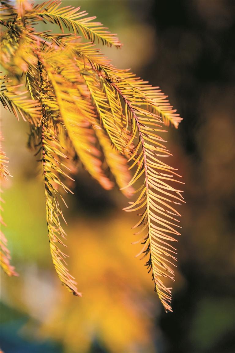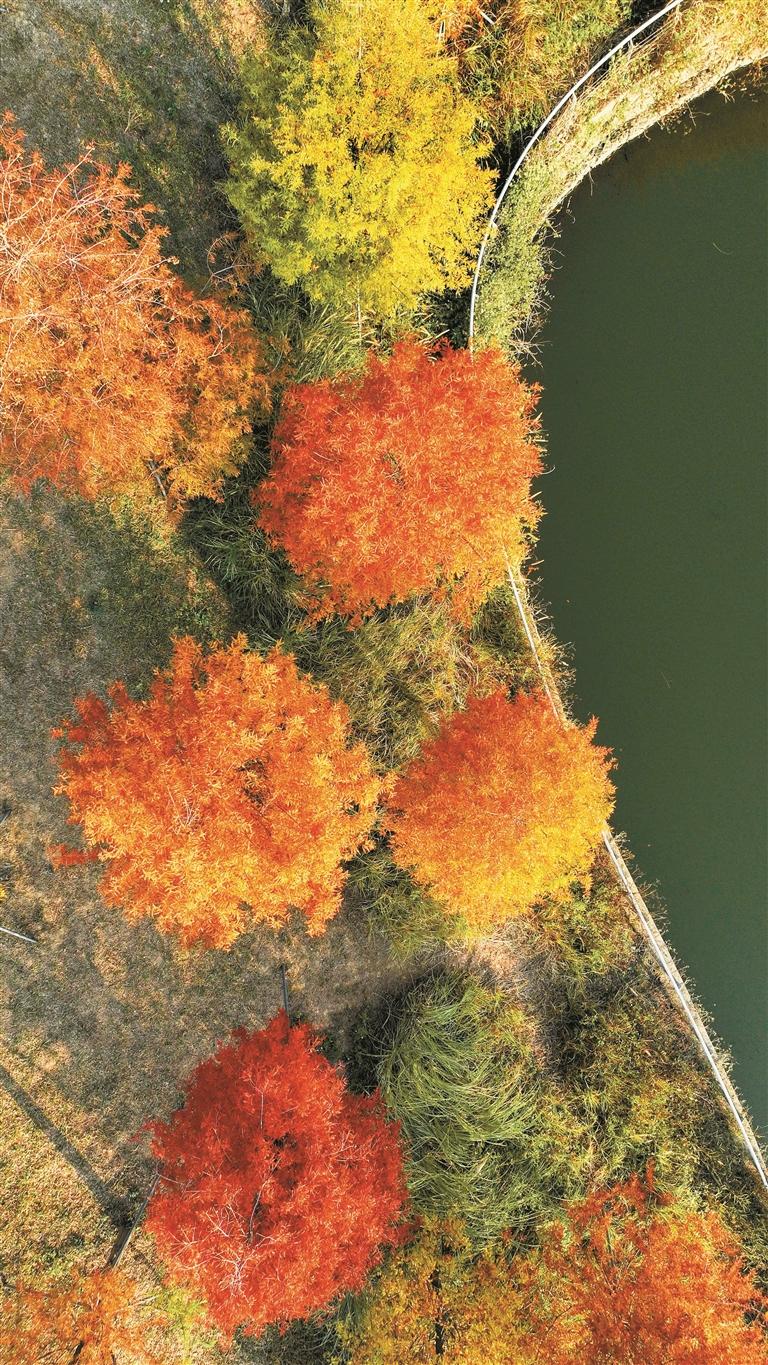 南山區(qū)環(huán)西麗湖綠道沿線變紅的落羽杉樹格外顯眼。
