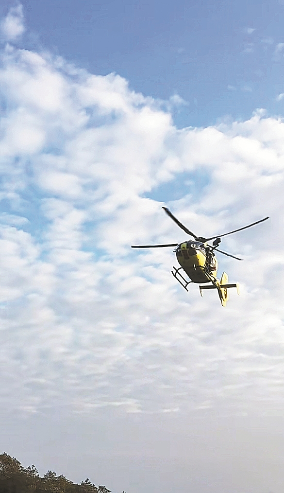 參與救援的東部通航機(jī)長(zhǎng)孫守明告訴記者,他與機(jī)組同事接到120的調(diào)度后,立即從東部通航鹽田直升機(jī)基地出發(fā)。直升機(jī)抵達(dá)梧桐山山頂時(shí),他注意到下方有人正在對(duì)傷者進(jìn)行心肺復(fù)蘇。由于事發(fā)地在山頂,孫守明與同事決定采用懸停吊運(yùn)方式實(shí)施救援。直升機(jī)在最高點(diǎn)上方懸停放下絞車后,另一名機(jī)組人員帶著救援工具下到山頂,很快將傷者帶上直升機(jī)。“我們是17時(shí)10分從梧桐山起飛,17時(shí)14分便將老人送到深圳市人民醫(yī)院,用時(shí)僅4分鐘?!睂O守明表示,抵達(dá)醫(yī)院后,早已經(jīng)等候在現(xiàn)場(chǎng)的醫(yī)護(hù)人員將老人抬上擔(dān)架,迅速送往ICU進(jìn)行治療。