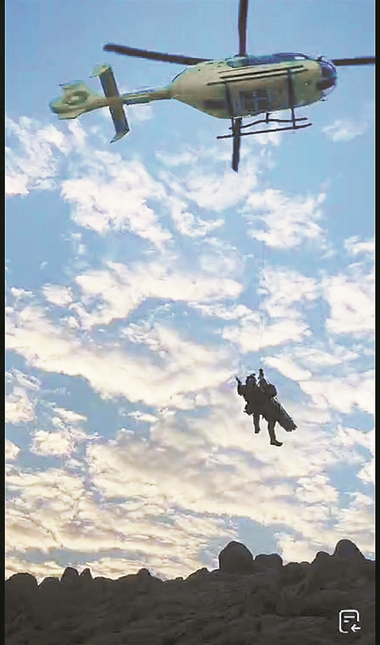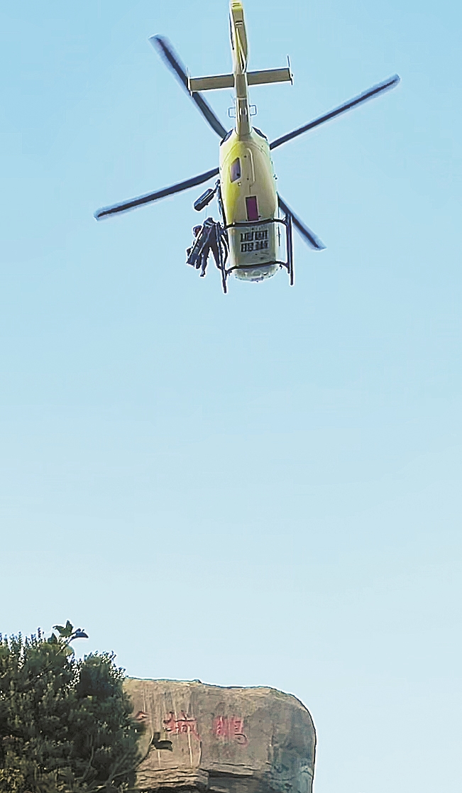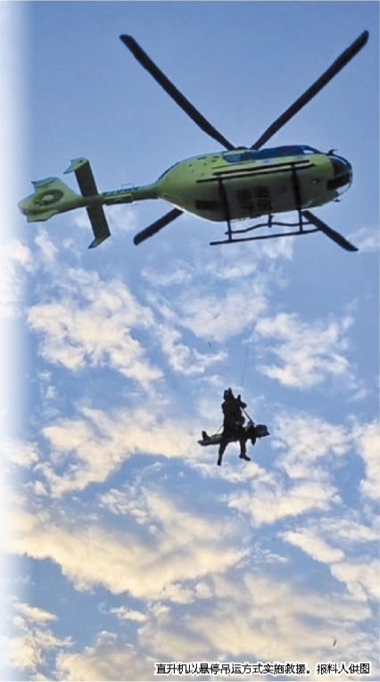 直升機(jī)以懸停吊運(yùn)方式實(shí)施救援。 報(bào)料人供圖