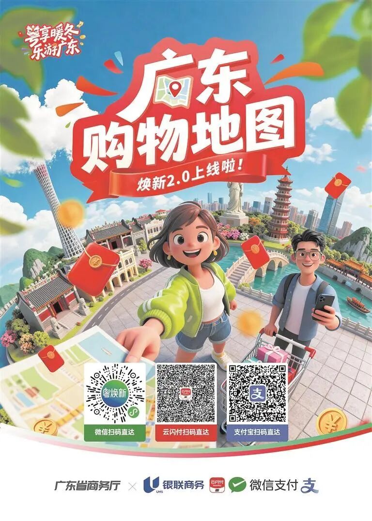 同日,“粵享暖冬 樂游廣東”消費季的另一重要平臺——“廣東購物地圖”2.0版正式上線。該版本實現(xiàn)三項功能升級:一是新增“以舊換新”“廣東優(yōu)品購”門店專區(qū),直觀展示全省近3萬家參與政府補貼活動的門店,并清晰標注“國補”“省補”類別;二是具備地理位置智能適配功能,可自動推薦距離最近的門店,實現(xiàn)一鍵導航;三是與“廣東優(yōu)品購”消費券系統(tǒng)打通,消費者在微信、云閃付平臺可完成“領(lǐng)券—導航—消費”一站式操作,享受更加便捷、智慧的購物體驗。