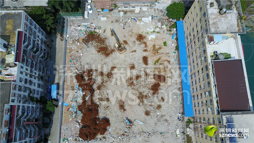 白石洲城中村內的建筑工地,“握手樓”群被推倒,白石洲正在升級