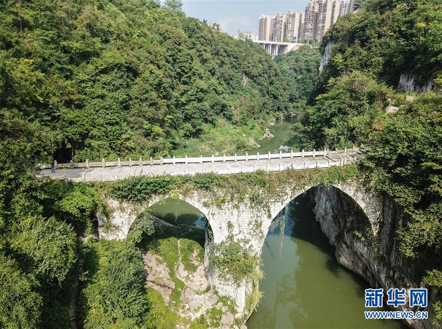 始建于清光緒年間的貴州省福泉市和善橋(8月21日無人機(jī)拍攝)。僅福泉市,修建于明清時(shí)期保存至今的石橋就有130座。新華社記者陶亮攝