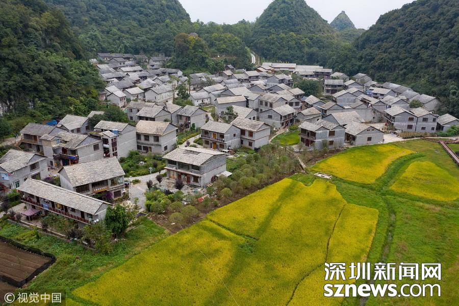 深圳新聞網(wǎng)訊 2018年9月27日,貴州安順,航拍坐落在群山中的鎮(zhèn)寧布依族苗族自治縣高蕩村。鎮(zhèn)寧高蕩村民居為石木結(jié)構(gòu)干欄式石板房,建造時間五、六十年至數(shù)百年不等,建筑保存基本完好。