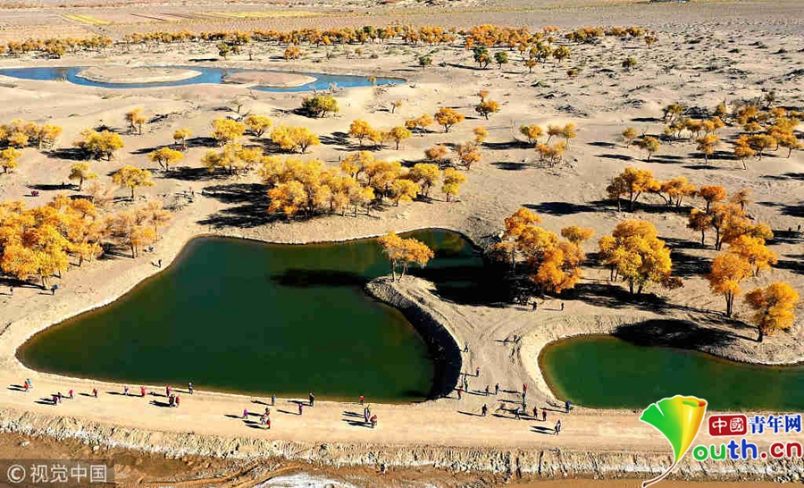 中國青年網(wǎng)北京10月9日電 2018年10月7日至8日,內(nèi)蒙古自治區(qū)阿拉善盟額濟(jì)納旗,地處巴丹吉林沙漠。額濟(jì)納河兩岸壯觀的胡楊林堪稱大漠的一顆綠色明珠,每年深秋時(shí)節(jié)的第一場(chǎng)秋霜過后,大片的胡楊樹葉由綠變黃,一眼望去,陽光下金色的樹葉襯著湛藍(lán)的天空于風(fēng)中婆娑起舞,鮮明的影調(diào),亮麗的色彩,令人流連忘返。