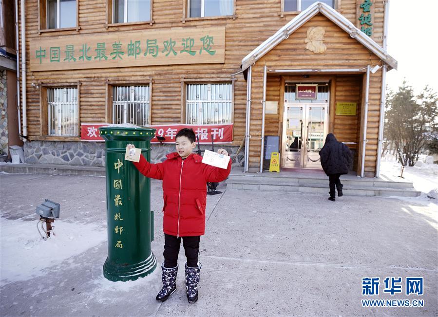1月24日,在黑龍江省漠河市北極村郵政局,游客在挑選明信片。該郵政局是我國(guó)最北的郵政局。新華社記者王毓國(guó)攝