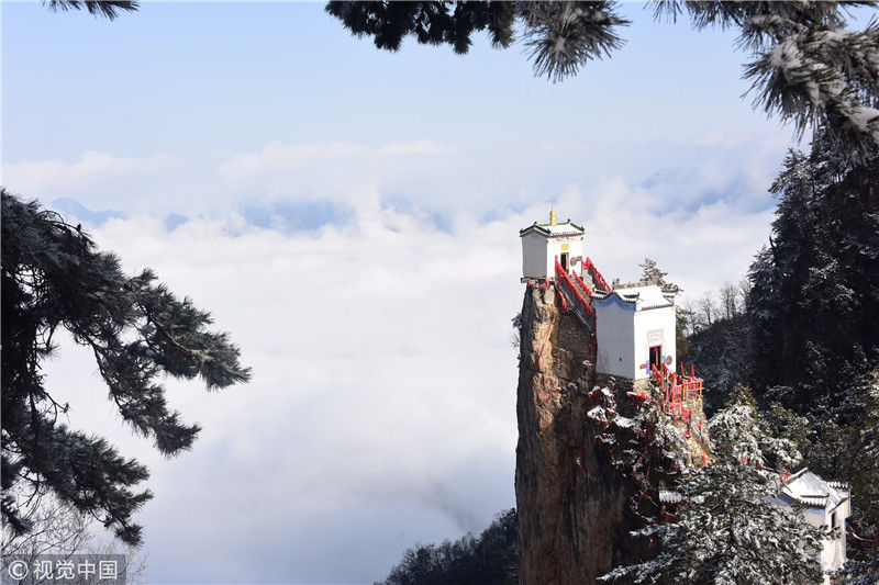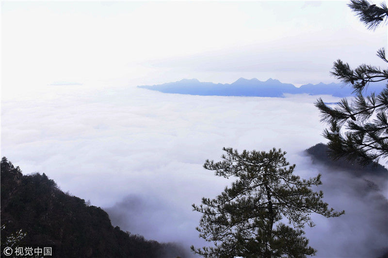 2019年3月3日,陜西商洛,位于鎮(zhèn)安縣的塔云山景區(qū)云海翻騰,宛如仙境。袁景智/視覺(jué)中國(guó) 編輯/陳進(jìn)