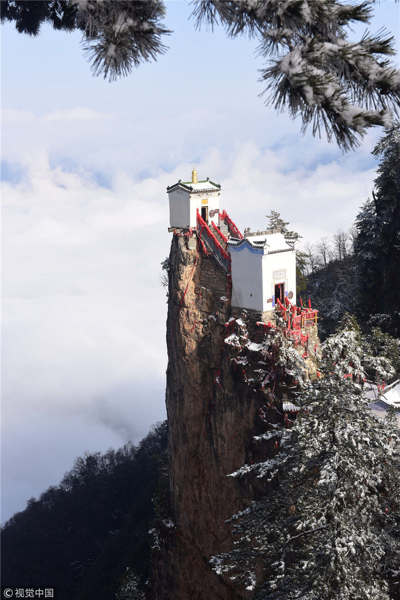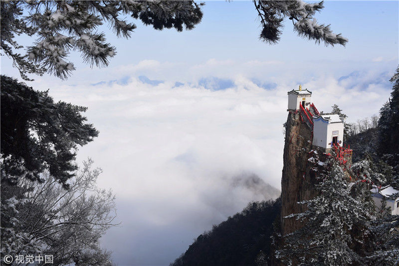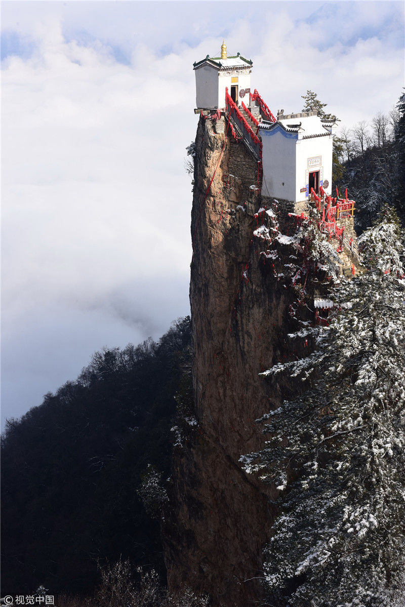 3月3日拍攝的塔云山金頂觀音殿。雪后初霽,秦嶺深處的塔云山景區(qū)云海翻騰,宛如仙境。位于陜西省鎮(zhèn)安縣柴坪鎮(zhèn)境內(nèi)的塔云山,其主峰上的古建筑群始建于明正德年間,其中金頂觀音殿建于塔云山萬(wàn)仞絕頂之上,遠(yuǎn)遠(yuǎn)望去,壯觀無(wú)比。 新華社記者陶明攝