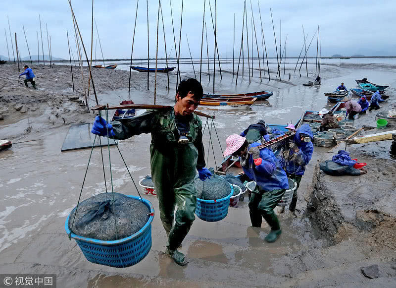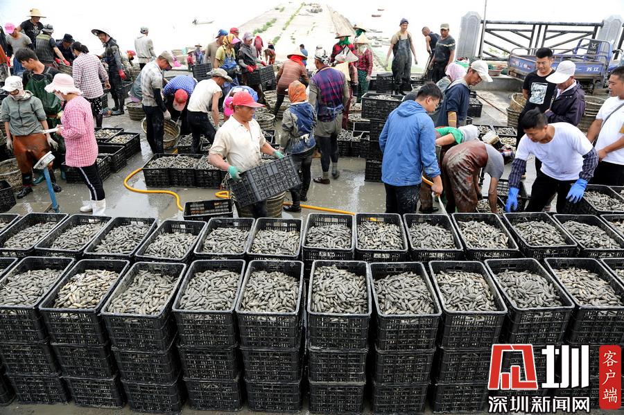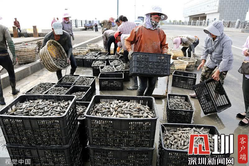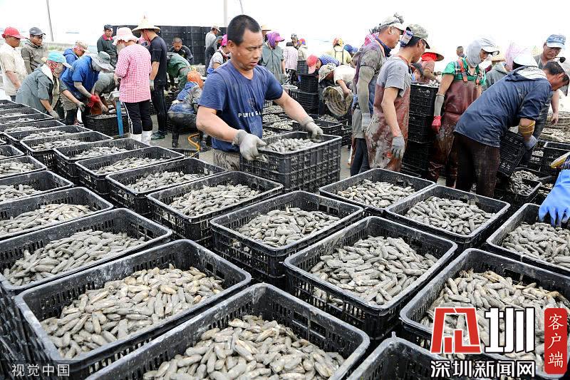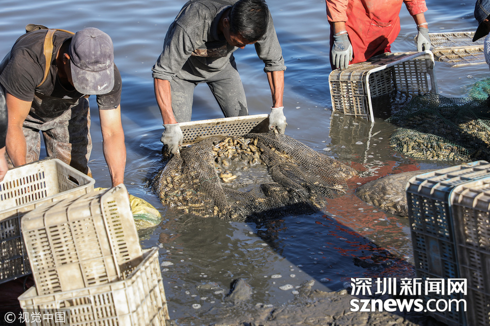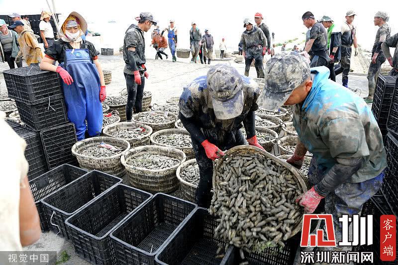 時下正是沿海地區(qū)海蟶收獲的季節(jié),在江蘇連云港海邊的灘涂上,漁民們將收獲的海蟶裝箱外運,一片忙碌。