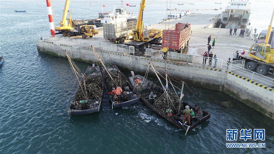 9月23日,滿載牡蠣的漁船返回碼頭。新華社記者龍雷攝
