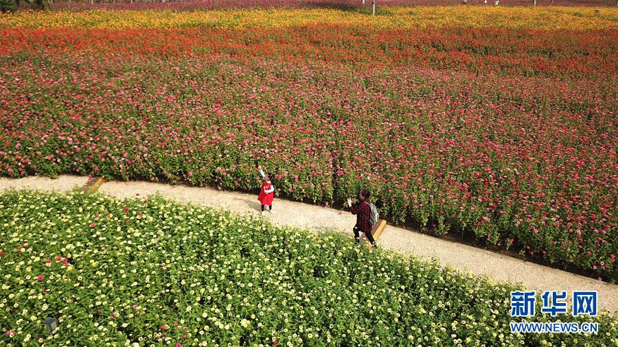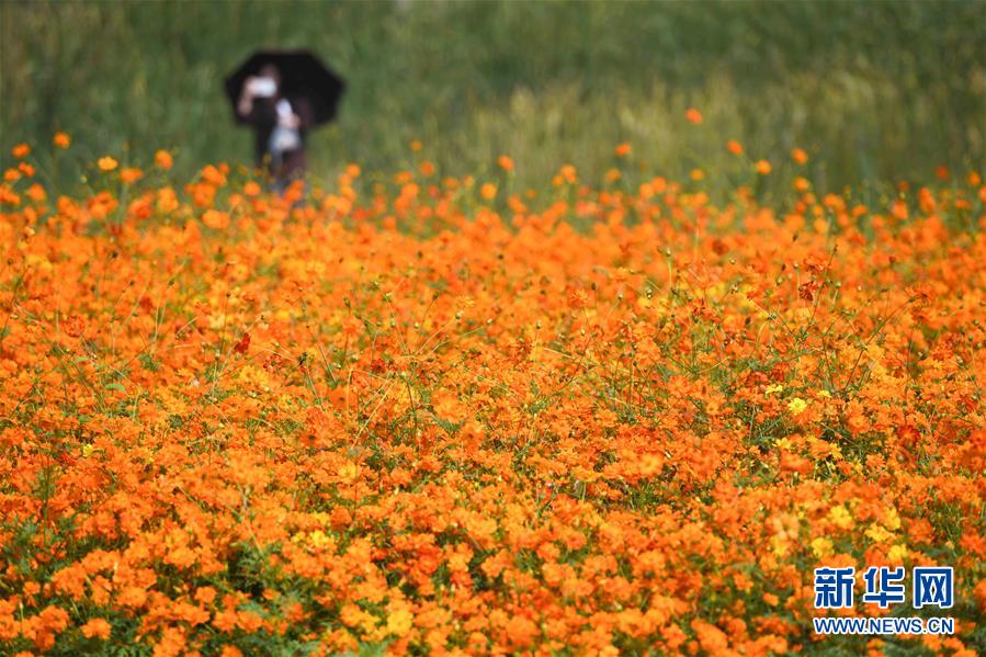10月9日,游人在四季花海城市公園拍照。 秋日時(shí)節(jié),位于安徽省合肥市的四季花海城市公園花香四溢,色彩繽紛,成為游客和市民休閑游玩的好去處。 新華社記者 張端 攝