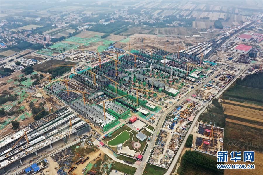 建設(shè)中的雄安站(10月10日無人機(jī)拍攝)。