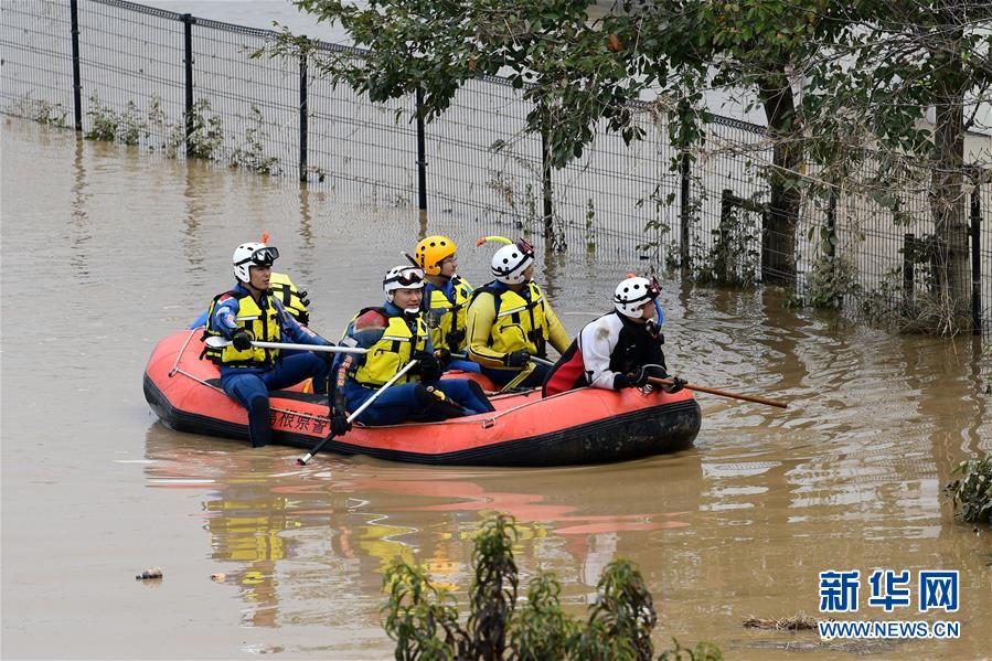 10月14日,在日本長野市,當(dāng)?shù)鼐仍藛T展開搜救工作。受縱貫東日本強(qiáng)臺風(fēng)“海貝思”帶來的強(qiáng)降雨影響,日本多地暴發(fā)洪災(zāi),已造成33人死亡、19人失蹤。據(jù)日本共同社13日統(tǒng)計(jì),“海貝思”過境導(dǎo)致日本多處河流泛濫,目前有21條河流決堤24處。其中,流經(jīng)長野縣的千曲川決堤,造成長野市和千曲市大范圍被淹,大片住宅區(qū)被洪水包圍,有的房屋甚至被淹至2層。新華社記者華義攝