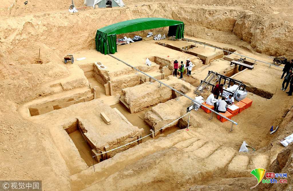 2019年10月12日,陜西西安,西安工地又一次挖出古墓。近日正在建設中的西安宜家薈聚購中心工地挖出數(shù)百古墓,密密麻麻。