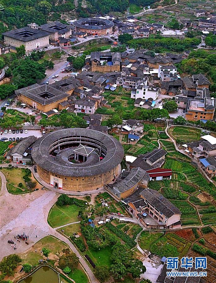 這是福建省龍巖市永定區(qū)湖坑鎮(zhèn)洪坑村土樓群全景(5月4日無(wú)人機(jī)拍攝)。新華社記者魏培全攝