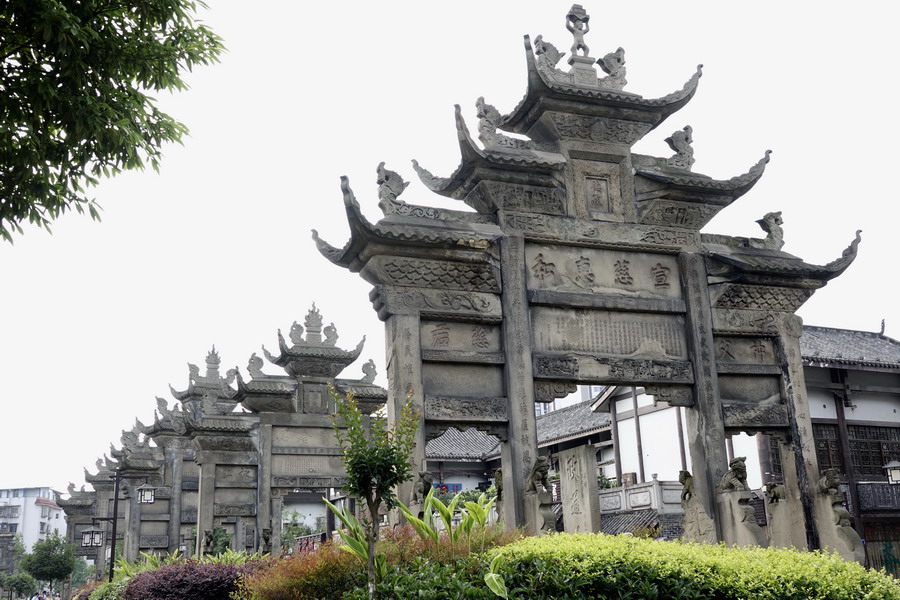 隆昌現(xiàn)存17座石牌坊,其中主要的13座呈念珠狀坐北向南一字排列,位于隆昌城南北兩端的古驛道中央,其余4座散布于鄉(xiāng)間。李仁奇攝