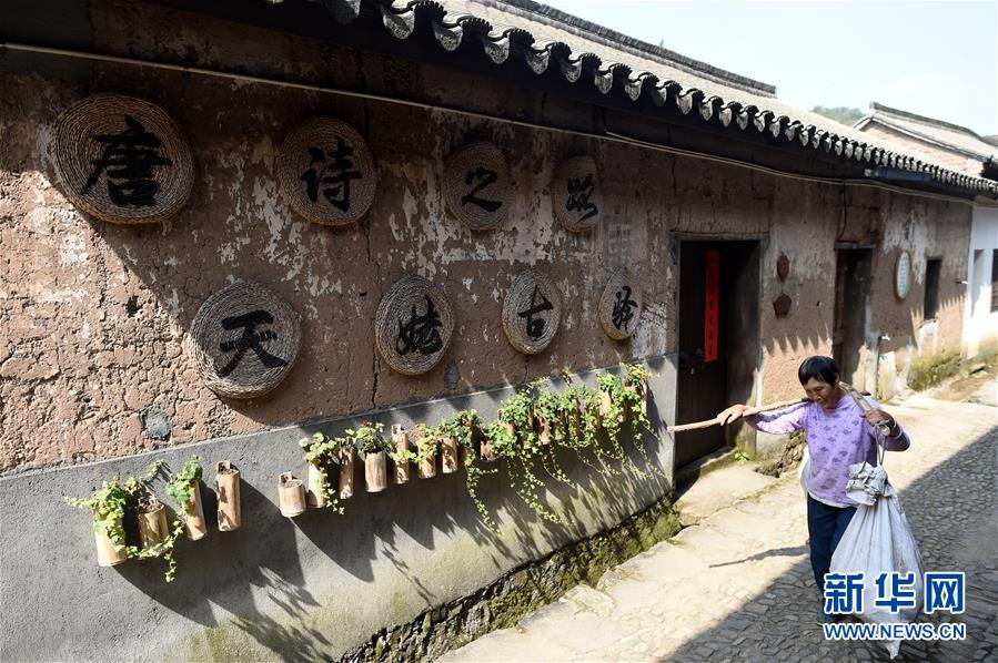10月24日,班竹村一名老人挑貨走在村內(nèi)的道路上。新華社記者韓傳號攝