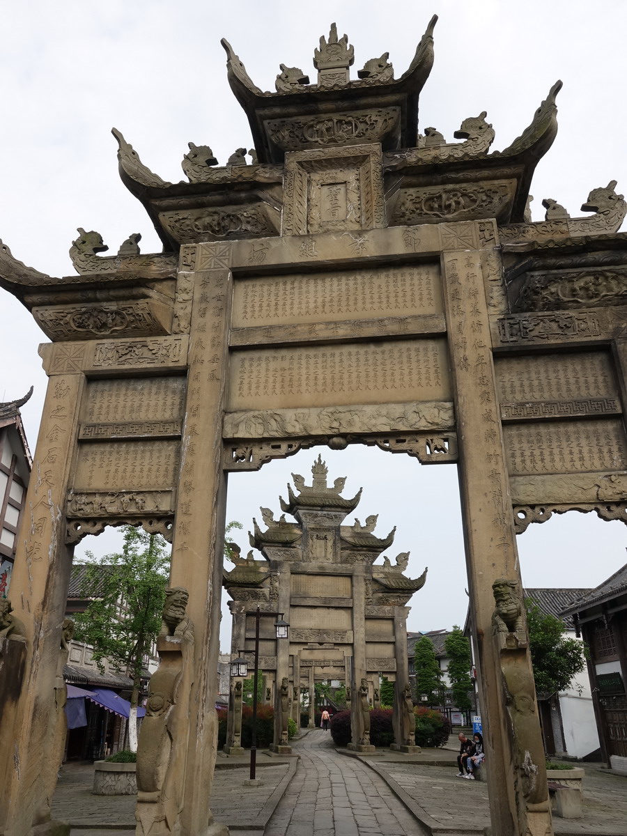 隆昌石牌坊大多為四柱三門三重檐五滴水石質(zhì)牌樓式建筑,平均面寬9米,通高11米,坊間距離最近處僅10余米。李仁奇攝