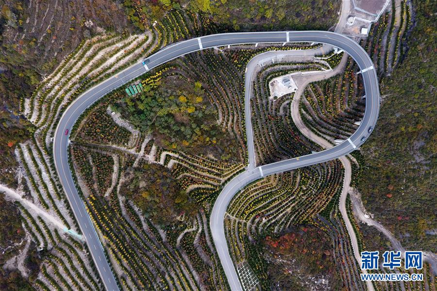 車輛行駛在山西省太原市天龍山公路上(10月24日無(wú)人機(jī)拍攝)。