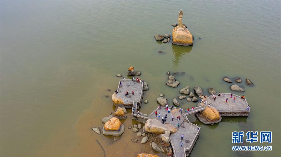 10月24日下午無人機拍攝的珠海標(biāo)志性景觀——珠海漁女。2018年10月23日,港珠澳大橋正式開通。新華社記者張金加攝