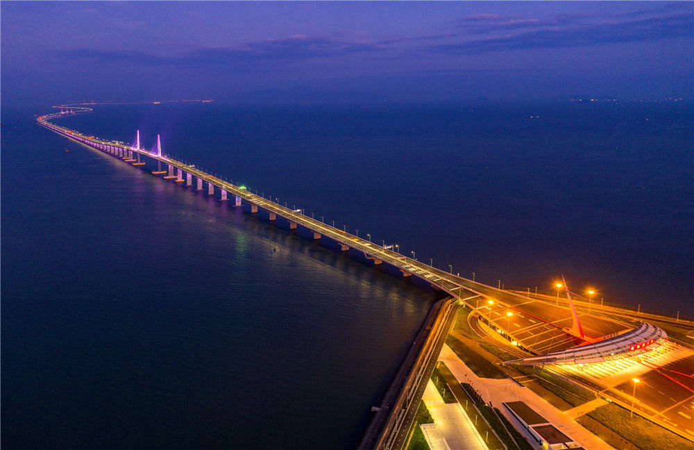 2018年12月3日,廣東珠海,通車后的港珠澳大橋夜景。供圖/視覺中國