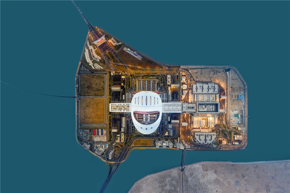 晨曦中的港珠澳大橋珠澳口岸人工島(10月24日無人機拍攝)。2018年10月23日,港珠澳大橋正式開通。在這座圓夢橋、同心橋、自信橋、復(fù)興橋開通一周年之際,記者親自體驗“一橋連三地、一日游三城”的悠閑與便利,于不同的旖旎風(fēng)光中自在游覽,在不同的城市風(fēng)貌間自如切換。新華社記者張金加攝