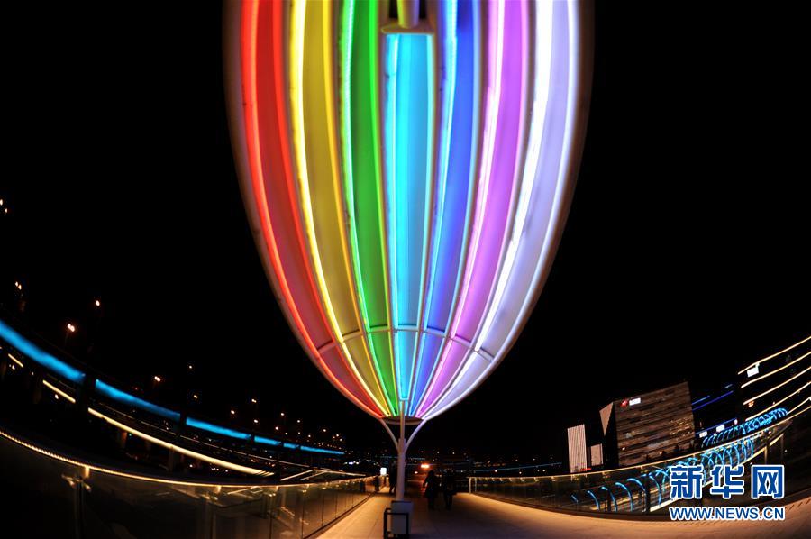 10月25日晚在國(guó)家會(huì)展中心(上海)周邊地區(qū)拍攝的“玉蘭花開”燈飾。
