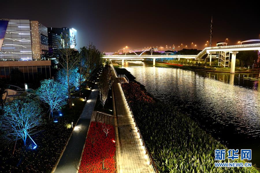 10月25日晚在國(guó)家會(huì)展中心(上海)附近拍攝的小淶港夜景。新華社記者張建松攝