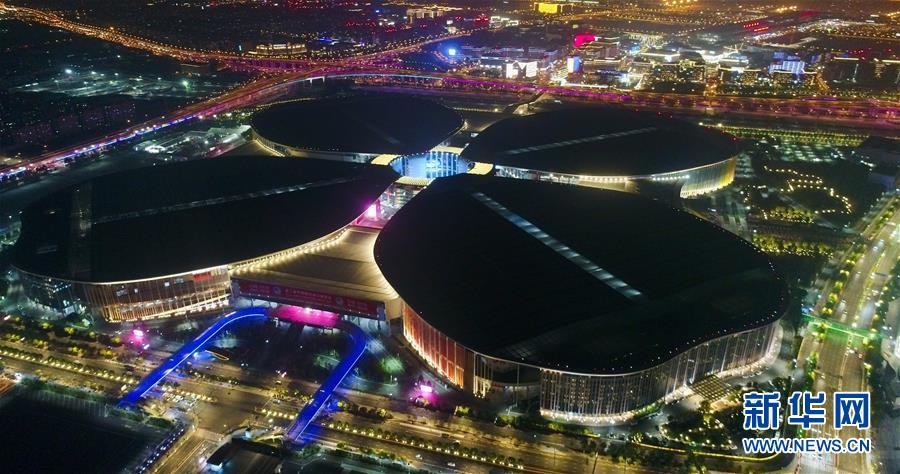 2019年11月5日,第二屆中國(guó)國(guó)際進(jìn)口博覽會(huì)將在上海開幕。夜幕下的國(guó)家會(huì)展中心(上海)燈光璀璨,流光溢彩,靜待八方賓客。新華社記者丁汀攝
