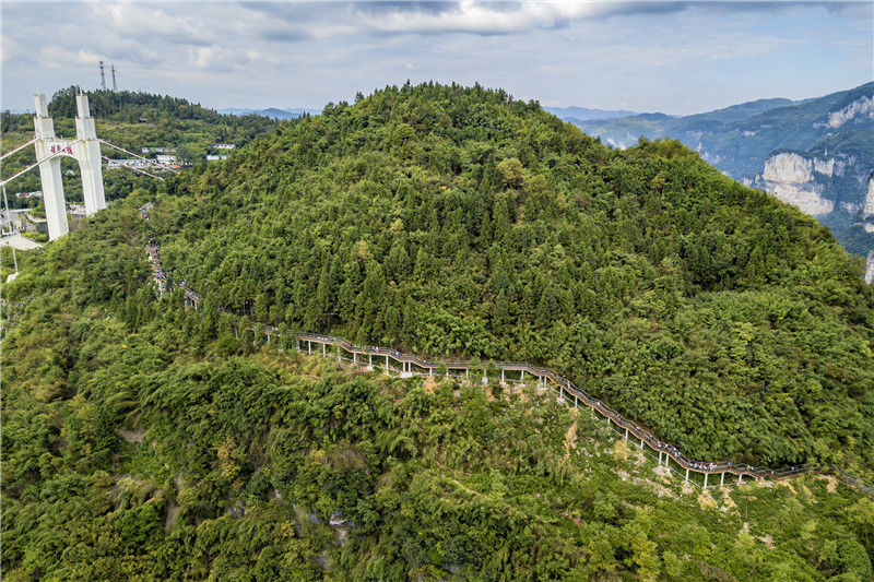 2019年9月13日,游客在重慶市黔江區(qū)城市峽谷景區(qū)芭拉胡的懸崖棧道上游玩。當(dāng)天是中秋節(jié)假的第一天。楊敏/視覺中國編輯/陳進