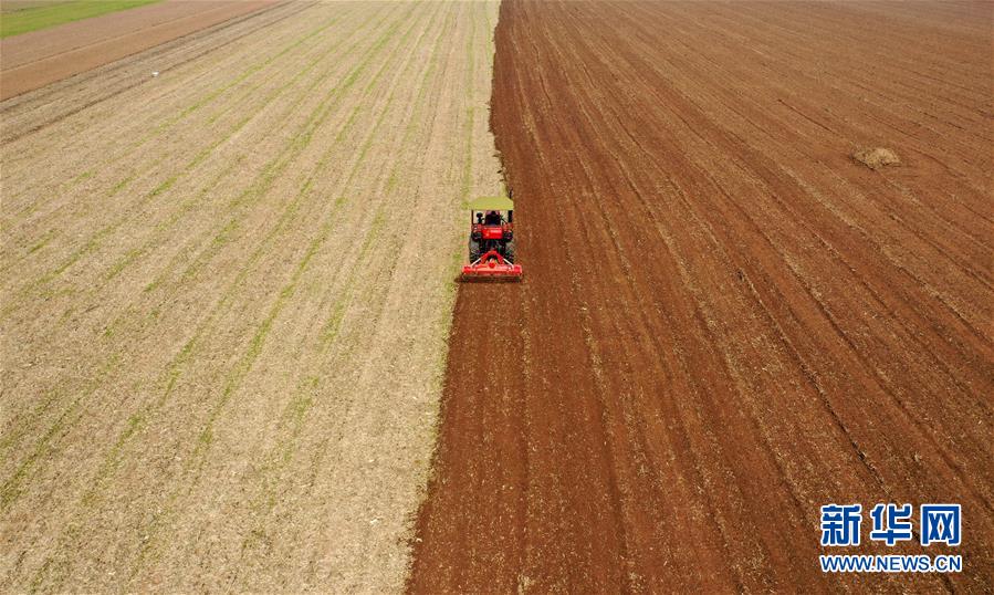 河南省寶豐縣趙莊鎮(zhèn)周營(yíng)村農(nóng)民駕駛機(jī)械在農(nóng)田里犁地(10月17日攝)。新華社記者李嘉南攝