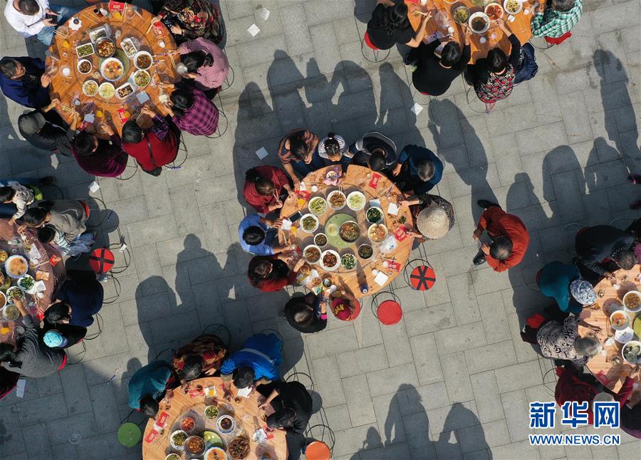 11月2日,南京仙林街道仙林新村社區(qū)居民參加千家宴(無(wú)人機(jī)拍攝)。11月2日至3日,江蘇南京仙林街道仙林新村社區(qū)舉辦“一家親”千家宴活動(dòng)。在社區(qū)精心準(zhǔn)備的基礎(chǔ)上,居民們帶上自己的拿手菜,歡聚一堂,其樂(lè)融融。仙林新村是一處拆遷安置房小區(qū),多年來(lái),社區(qū)通過(guò)網(wǎng)格化管理等方式,鼓勵(lì)和引導(dǎo)居民開(kāi)展自治,形成了良好的社區(qū)鄰里關(guān)系。 新華社記者 季春鵬 攝