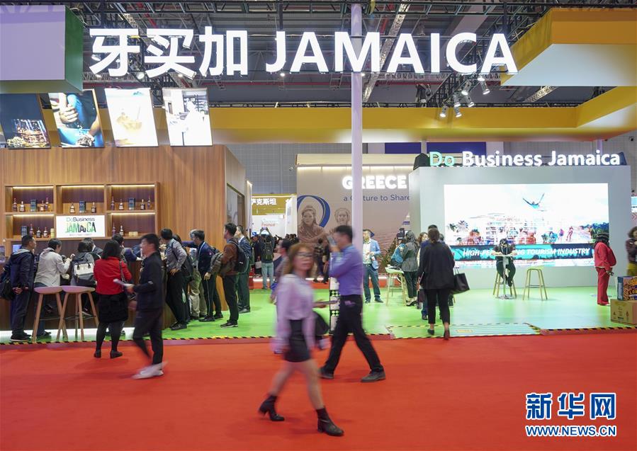 參觀者在第二屆進(jìn)博會牙買加國家館參觀(11月6日攝)。新華社記者殷剛攝