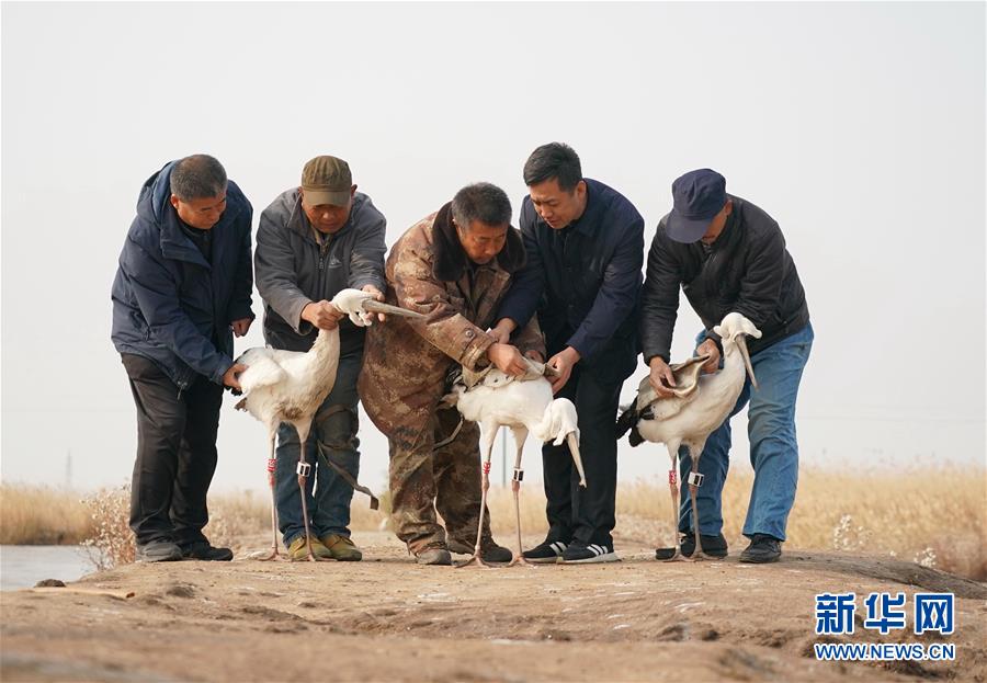 11月16日,在樂亭縣野生動(dòng)物保護(hù)協(xié)會(huì)大清河鳥類救助站,工作人員放飛國(guó)家一級(jí)保護(hù)動(dòng)物東方白鸛。新華社記者楊世堯攝