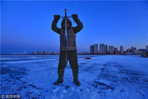 寒冬采冰人:起早貪黑 “淘金”冰雪